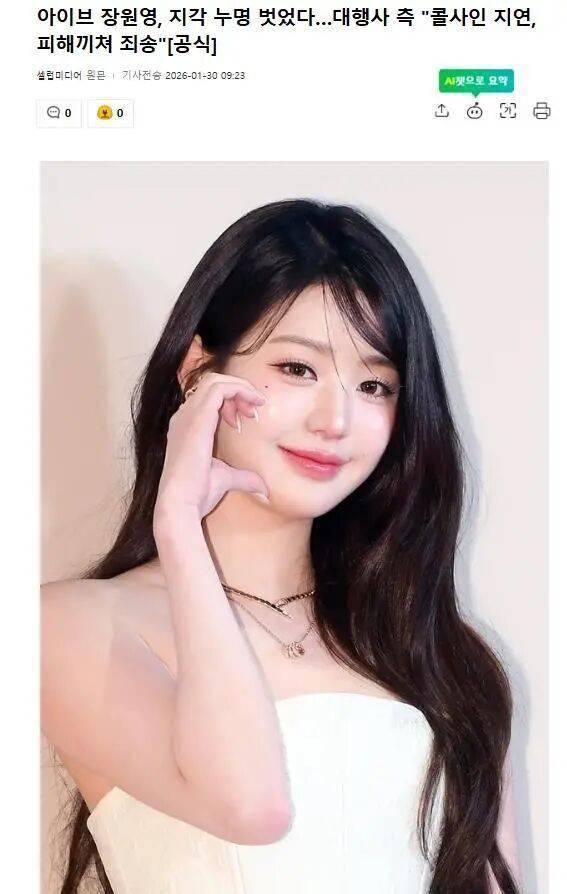 据1月30日韩国媒体最新报道,当红女团IVE成员张元英,近日又经历了一场舆论的“过山车”。一场高端品牌活动,让她无端背负了“迟到”的指责,而随着活动代理公司的一纸官方声明,事件彻底反转——所谓的“耍大牌迟到”,原来是一场因现场运营不畅导致的“不白之冤”。