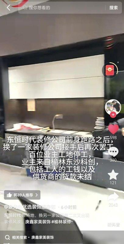 装修本来是给房子“穿新外套”,结果变成给骗子“送红包”——榆林富康路那两家卷钱跑路的公司,把业主的“家的期待”直接揉成了带泪的纸团。我楼下王姐就是受害者,攒了二十八年卖早餐的钱,想给刚结婚的女儿装套温馨小窝,找了家说“7万全包还送沙发”的公司,刚交完5万6,转天去工地就见门上贴了“转让”,工人堵在门口骂:“我们做了半个月,一分钱没拿到!”她举着皱巴巴的合同蹲在楼梯间:“我连窗帘花纹都选了奶茶色,现在墙还是水泥灰,这钱能要回来吗?”